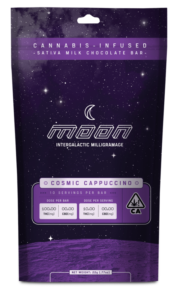 Buy Moon Chocolate Bar – Cosmic Cappuccino | Sativa. The Cosmic Cappuccino is the perfect sativa edible for those seeking a cosmic journey to the moon. It is a delicious coffee flavored moon chocolate bar which you can enjoy the silky, velvety embrace of milk chocolate that is expertly paired with energizing coffee aromas. More than just a pleasure