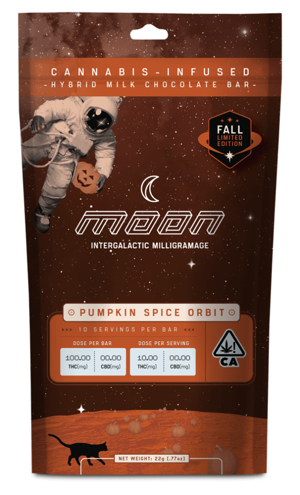 Buy Moon Chocolate Bar – Pumpkin Orbit | Hybrid. These delightful bite-sized treats have a mouthwatering berry-flavored center that is hand-encased in smooth milk chocolate. Indulge in all of your fall cravings with your favorite seasonal flavor, Pumpkin Spice Orbit. Milk chocolate swirled together with classic fall spices. This is hands down the best THC chocolate bar I’ve tried. The pumpkin chunks are delicious, and the chocolate is so creamy. The high was just right.